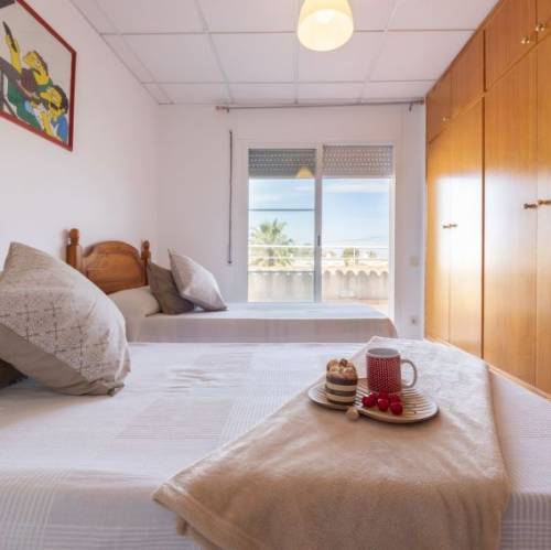 Deltebre, EspañaUrb. Riumar a 8 km de Deltebre: Casa de apartamentos "Res Mediterraneo", moderno, agradable, confortable del año 2004. En las afueras de la localidad, a 8 km del centro de Deltebre, lugar tranquilo, a 150 m del mar, a 150 m de la playa. Comunitario: terreno 400 m2 (vallado), piscina rectangular (Disponible por temporada: 01.Jun. - 30.Sep.). Ducha exterior. Privado: terraza (7 m2), muebles de jardín, aparcamiento (número limitado) junto a la casa, posibilidad de aparcamiento en la calle. Tienda de comestibles, supermercado 700 m, restaurante, bar 400 m, playa de arena 150 m. A tener en cuenta: coche recomendable. Adecuado para familias. Apartamento de 3 estancias 85 m2, en la planta baja. Con mobiliario muy confortable y bonito: salón-comedor con 1 sofá-cama doble, 1 posibilidad para dormir, TV satélite, pantalla plana y aire acondicionado. Salida al balcón. 1 dorm. con 1 cama de matrimonio. 1 dorm. con 2 camas. Cocina abierta (horno, lavavajillas, 4 placas de vitrocerámica, microondas). Baño/bidet/WC. Terraza 10 m2. Muebles de terraza. Vista lejana al mar. El alojamiento dispone de: lavadora. Internet (Wifi, gratis). Plaza de aparcamiento. Adecuado para familias. 2 mascotas / perros. HUTTE002423