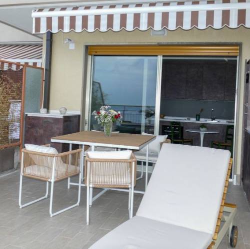 Ventimiglia, ItaliaVentimiglia Ville: Residencia "Le Calandre", bonita de 3 plantas. 16 apartamentos en la residencia. A 400 m del centro de Ventimiglia Alta, a 3 km del centro de Ventimiglia, lugar soleado, a 600 m del mar. Acceso hasta la casa. Acceso por escaleras (5 escalones) hasta la casa. Aparcamiento n. 1 junto a la casa. Tienda de comestibles 400 m, supermercado 3 km, bar 500 m, panadería 400 m, parada de autobús 100 m, estación de tren "Ventimiglia" 3 km, playa de arena "Calandre" 600 m playa de gravilla 500 m. Atracciones en los alrededores: Hanbury Garden 5 km, Balzi Rossi 8 km, Sanremo 20 km, Mentone 3 km. "Nautilus" estudio 40 m2 en el 1° piso. Luminoso, reformado en 2023, con mobiliario moderno y de buen gusto: salón-comedor con 1 sofá-cama doble (140 cm, 200 cm de longitud), ventilador. 1 dorm. doble con 1 cama doble (140 cm, 200 cm de longitud), ventilador. Rincón-cocina (lavavajillas, 4 Placas de inducción, tostadora, hervidor de agua eléctrico, cafetera eléctrica). Salida a la terraza. Ducha/bidet/WC. Calefacción de gas. Calefacción disponible desde el 01.11. al 08.04. Terraza 30 m2. Vista panorámica muy bonita al mar. El alojamiento dispone de: lavadora. Internet (Wifi, gratis). CITRA:008065-LT-0408