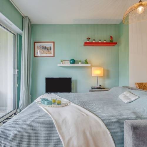 Saint-Malo, FranciaCasa de apartamentos "Aigue Marine", muy bonito de 3 plantas del año 2022. En el barrio de Rothéneuf, excelente situación: muy céntrica pero tranquila, a 300 m del mar, a 300 m de la playa. Comunitario: jardín, cuidado. En el inmueble: ascensor, sala para guardar bicicleta. Aparcamiento (cubierto). Tienda, tienda de comestibles, restaurante, bar 50 m, panadería 100 m, parada de autobús "Bas sablon" 50 m, estación de tren "Gare TGV Saint Malo" 7.3 km, ferry "Gare maritime du Naye" 9 km, playa de arena "du Havre" 300 m, piscina termal "Thermes marins de St Malo" 3.9 km. Puerto deportivo 8.4 km. Atracciones en los alrededores: Le grand aquarium de St Malo 9.1 km, Dinan 37 km, Dinard 17 km, Cancale 10 km, Dol de Bretagne 25 km, Le Mont St Michel 53 km. Estudio 30 m2 en el 2° piso. Luminoso, con mobiliario confortable y de buen gusto: salón-dormitorio grande con 1 cama-armario (140 cm, 190 cm de longitud), TV (pantalla plana). Salida a la terraza. Cocina abierta (2 fogones, horno, lavavajillas, tostadora, hervidor de agua eléctrico, cafetera eléctrica, Cápsulas de café (Dolce Gusto) extra). Ducha/WC. Calefacción eléctrica. Terraza pequeña 10 m2, orientación sur. Muebles de terraza. El alojamiento dispone de: lavadora, secador de pelo. Internet (Wifi, gratis). Plaza de aparcamiento n. 15 (cubierto). A tener en cuenta: apartamento para no fumadores. Detector de humo. 352880044056F
