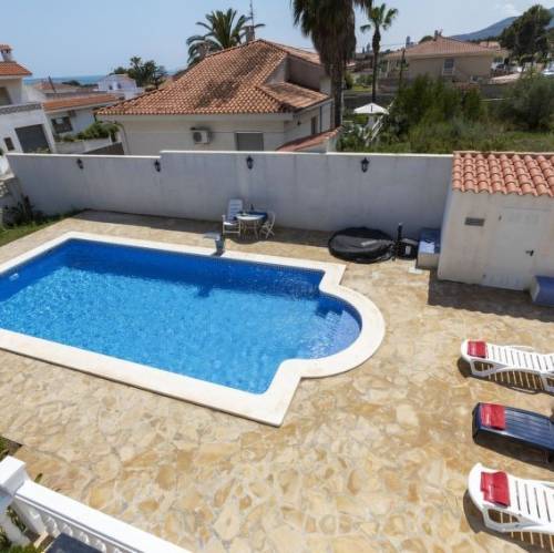 Alcanar, EspañaAlcanar Playa a 5 km de La Rapita: Villa "Mar y montaña", amplia, agradable de 2 plantas, individual. A 250 m del mar. Privado: jardín grande 400 m2 (vallado), piscina rectangular (9 x 5 m, 100 - 180 cm de profundidad, Disponible por temporada: 01.Abr. - 15.Oct.). Ducha exterior, barbacoa. En el inmueble: aire acondicionado, lavadora. Aparcamiento (para 2 coches). Tienda 4 km, supermercado 4 km, restaurante 400 m, bar 200 m, panadería 4 km, café 200 m, playa rocosa "Sota MOntsia" 400 m. Puerto deportivo 5 km, campo de golf (18 hoyos) 30 km. Atracciones en los alrededores: Laberinto mas grande de España 40 km, Peñiscola 40 km, Delta del Ebro 12 km, Port Aventura 125 km. Zona de senderismo La Foradada del Montsia 10 km. A tener en cuenta: sin ascensor. "Mar y Montaña", villa 5 estancias 155 m2 en 2 plantas. Con mobiliario funcional: salón-comedor con chimenea, TV satélite, aire acondicionado, bomba de calor, caliente y persianas eléctricas. Salida a la terraza-jardín. 1 dorm. con 1 cama de matrimonio (1 x 135 cm, 190 cm de longitud), aire acondicionado y persianas eléctricas. 1 dorm. con 2 camas de matrimonio (2 x 135 cm, 190 cm de longitud), aire acondicionado y persianas eléctricas. 1 dorm. con 2 camas (90 cm, 190 cm de longitud). Cocina (horno, lavavajillas, 4 placas de vitrocerámica, tostadora, microondas, congelador, cafetera eléctrica). Baño/ducha/WC. Calentador (60 litros). Planta superior: 1 dorm. con 2 camas (90 cm, 190 cm de longitud), aire acondicionado y persianas eléctricas. 2 terrazas grandes. Muebles de terraza, barbacoa, tumbonas (4). Vista a las montañas. El alojamiento dispone de: lavadora, plancha, trona, cuna, secador de pelo. Internet (Wifi, gratis). Plaza de aparcamiento junto a la casa. A tener en cuenta: permitido máximo 1 mascota / perro. TV solamente ES, FR. La piscina descrita es de uso privado. HUTT-052905