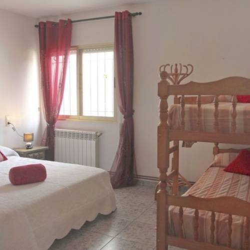Alcanar, EspañaAlcanar Playa a 5 km de La Rapita: Villa "Mar y montaña", amplia, agradable de 2 plantas, individual. A 250 m del mar. Privado: jardín grande 400 m2 (vallado), piscina rectangular (9 x 5 m, 100 - 180 cm de profundidad, Disponible por temporada: 01.Abr. - 15.Oct.). Ducha exterior, barbacoa. En el inmueble: aire acondicionado, lavadora. Aparcamiento (para 2 coches). Tienda 4 km, supermercado 4 km, restaurante 400 m, bar 200 m, panadería 4 km, café 200 m, playa rocosa "Sota MOntsia" 400 m. Puerto deportivo 5 km, campo de golf (18 hoyos) 30 km. Atracciones en los alrededores: Laberinto mas grande de España 40 km, Peñiscola 40 km, Delta del Ebro 12 km, Port Aventura 125 km. Zona de senderismo La Foradada del Montsia 10 km. A tener en cuenta: sin ascensor. "Mar y Montaña", villa 5 estancias 155 m2 en 2 plantas. Con mobiliario funcional: salón-comedor con chimenea, TV satélite, aire acondicionado, bomba de calor, caliente y persianas eléctricas. Salida a la terraza-jardín. 1 dorm. con 1 cama de matrimonio (1 x 135 cm, 190 cm de longitud), aire acondicionado y persianas eléctricas. 1 dorm. con 2 camas de matrimonio (2 x 135 cm, 190 cm de longitud), aire acondicionado y persianas eléctricas. 1 dorm. con 2 camas (90 cm, 190 cm de longitud). Cocina (horno, lavavajillas, 4 placas de vitrocerámica, tostadora, microondas, congelador, cafetera eléctrica). Baño/ducha/WC. Calentador (60 litros). Planta superior: 1 dorm. con 2 camas (90 cm, 190 cm de longitud), aire acondicionado y persianas eléctricas. 2 terrazas grandes. Muebles de terraza, barbacoa, tumbonas (4). Vista a las montañas. El alojamiento dispone de: lavadora, plancha, trona, cuna, secador de pelo. Internet (Wifi, gratis). Plaza de aparcamiento junto a la casa. A tener en cuenta: permitido máximo 1 mascota / perro. TV solamente ES, FR. La piscina descrita es de uso privado. HUTT-052905