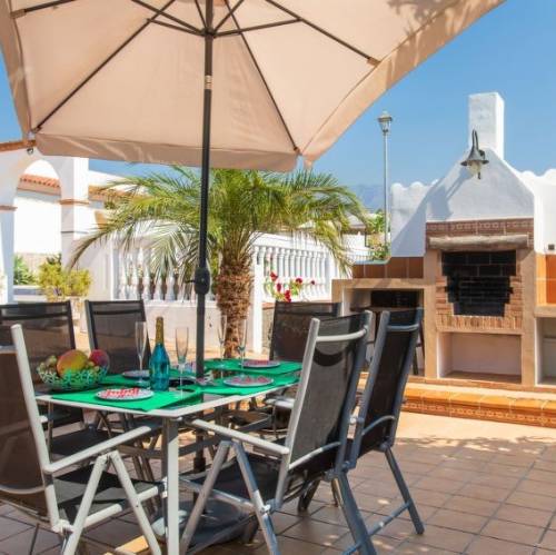 Rincón de la Victoria, EspañaA 1 km de Chilches: Resort "Playa del Conde", bonito. En el barrio de Playa del Conde, a 1 km del centro de Chilches, en la periferia, a 7 km del centro de Rincón de la Victoria, en un barrio residencial, a 500 m del mar, a 500 m de la playa. Comunitario: terreno 100 m2, jardín (vallado) con césped y plantas, terreno con hierba, piscina en forma de riñon (20 x 6 m, Disponible por temporada: 01.May. - 31.Oct.). Ducha exterior, posibilidad de aparcamiento en la calle. Supermercado 1 km, restaurante 1 km, 500 m. Campo de golf 3.5 km. "Playa del Conde", casa adosada 4 estancias 100 m2 en 2 plantas. Reformada en 2016, con mobiliario funcional y con mucha madera: salón con invernadero con chimenea, TV satélite, radio, CD y aire acondicionado. Cocina (horno, lavavajillas, 4 placas de vitrocerámica, tostadora, hervidor de agua eléctrico, cafetera eléctrica) con mesa de comedor. Salida a la terraza. WC separado. Planta superior: 1 dorm. con 1 cama doble (160 cm), aire acondicionado. 1 dorm. con 1 cama doble (160 cm), baño/WC y aire acondicionado. 1 dorm. con 1 cama de matrimonio (140 cm), aire acondicionado. Baño/WC. Terraza terraza. Muebles de terraza, barbacoa, tumbonas. El alojamiento dispone de: lavadora, plancha. Internet (Wifi, extra). A tener en cuenta: apartamento para no fumadores. Debido al coronavirus (COVID-19) este alojamiento toma medidas para garantizar la seguridad de los huéspedes y el personal. Por consiguiente, el uso de la piscina puede ser limitado o, en algunos casos, no es posible en absoluto. CTC-201656951