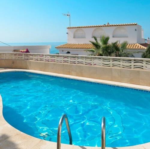 Peñíscola, EspañaResort "Escudos", de 2 plantas. 7 apartamentos en la residencia. En el barrio de Monte Pichells, a 1.5 km del centro de Peñiscola, a 130 km del centro de Valencia, a 130 km del centro de Tarragona, en una pendiente, a 400 m del mar, en una calle sin salida. Comunitario: piscina en forma de riñon (35 m2, 170 cm de profundidad, Disponible por temporada: 01.Ene. - 31.Dic.). Ducha exterior, terraza. En el complejo: lavadora, secadora (uso comunitario). Acceso por escaleras hasta la casa. Garaje comunitario junto a la casa. Tienda 1.5 km, supermercado 1.5 km, playa de arena 1.8 km, playa rocosa 400 m (pequeña). A tener en cuenta: coche recomendable. Los alojamientos pueden diferir en la superficie habitable, la distribución de las estancias, el equipamiento y el mobiliario. "Escudos (PEA125)", apartamento de 3 estancias 60 m2, en planta superior, orientación sur. Vivienda adecuada para 4 adultos. Con mobiliario de buen gusto y agradable: salón-dormitorio con mesa de comedor, TV satélite, radio, CD y aire acondicionado. Salida a la terraza. 2 dorm., cada habitación con 2 camas (90 cm, 190 cm de longitud). Cocina abierta (lavavajillas, 4 fuegos, tostadora, hervidor de agua eléctrico, microondas, congelador, cafetera eléctrica). Ducha/WC. Calefacción de gas. Balcón o terraza. Muebles de terraza, tumbonas (2). Vista al mar. El alojamiento dispone de: trona, cuna. Internet (Wifi, gratis). A tener en cuenta: apartamento para no fumadores. 1 mascota / perro. Entrada privada. AT-030254-CS