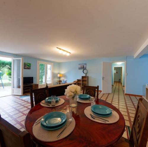 Moissannes, FranciaCasa unifamiliar "Le Havre de Lage". En el aldea Lage Lauchoux, en la periferia Moissannes, a 6 km del centro de Saint Léonard de Noblat, en el campo. Privado: parque 3'000 m2, Aparcamiento (para 5 coches) en el mismo terreno. Parada autobús 2 km, estación de tren "Saint Léonard de Noblat". Atracciones en los alrededores: Saint Léonard de Noblat 6 km, cité médiévale classée, plus beaux détours de France, La Vienne Pont-de-Noblat, Limoges 30 km, Aéroport de Limoges. Lagos conocidos fácilmente accesibles: Les lacs de Vassivière & St Pardoux 40 km, Activités de baignade, nautique, pêche. 40 km. Zona de senderismo Sentier de randonnées depuis hébergement, Chemin de St Jacques de Compostelle, La Collégiale classée patrimoine UNESCO. A tener en cuenta: coche recomendable. Adecuado para familias. "Le Havre de Lage", casa 5 estancias 175 m2. Con mobiliario confortable y bonito: salón-comedor con chiminea nórdica, mesa de comedor y TV (pantalla plana). Salida a la terraza. Cocina (horno, lavavajillas, 4 Placas de inducción, tostadora, hervidor de agua eléctrico, microondas, cafetera eléctrica). WC separado. Planta superior: 1 dorm. con Vestidor con 2 camas (90 cm, 190 cm de longitud). 1 dorm. con 1 cama (90 cm, 190 cm de longitud), 1 cama de matrimonio (1 x 140 cm, 190 cm de longitud). 1 dorm. con 1 cama de matrimonio (1 x 140 cm, 190 cm de longitud). Ducha/WC. Planta superior 2: sala de juegos abuhardillada grande con 1 cama de matrimonio (1 x 140 cm, 190 cm de longitud). Baño, ducha, bañera de hidromasaje. Calefacción. 2 terrazas grandes terraza, orientación sur. Muebles de terraza, barbacoa, tumbonas. Vista bonita al jardín y al paisaje. El alojamiento dispone de: trona, cuna hasta 2 años, secador de pelo. Internet (Wifi, gratis). A tener en cuenta: apartamento para no fumadores. Permitido máximo 1 mascota / perro. Oferta de un particular según el art. 155, IV del CGI.