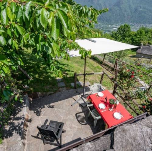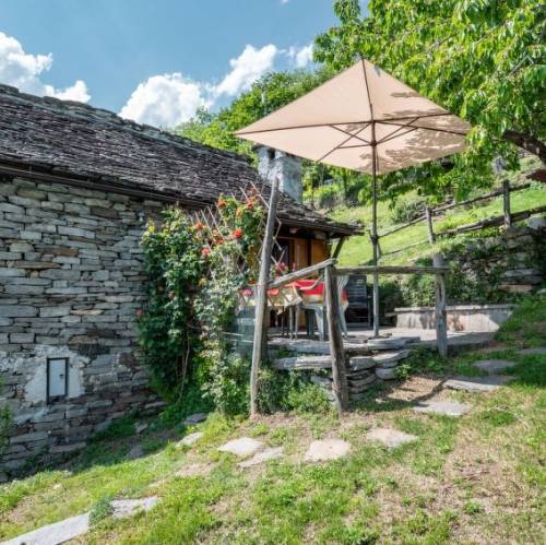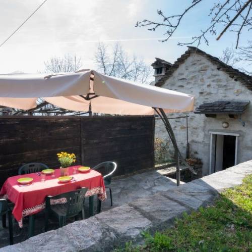 Domodossola, ItaliaCasa "Baita Anita", 550 m s.n. m., rústica. En el aldea Anunzo, a 6 km del centro de Domodossola, a 45 km del centro de Verbania/Intra, a 47 km del centro de Locarno, en una pendiente, a 45 km de un lago. Privado: terreno en estado natural 100 m2, jardín en diferentes niveles (vallado), pradera, terreno con árboles frutales. Acceso empinado, estrecho durante 100 m (camino de tierra). Posibilidad de aparcamiento 200 m. Tienda 3 km, supermercado 6 km, estación de tren "Domodossola" 6 km, playa de gravilla 47 km. A tener en cuenta: carga y descarga de equipaje posible en la casa de vacaciones. Tenga en cuenta: la chimenea en el salón es la única opción de calefacción para toda la casa (de todos modos, hay un conducto al dormitorio). "Baita Anita (DOD100)", casa 2 estancias 52 m2 en 2 plantas. Con mobiliario sencillo y rústico: salón-comedor con chimenea, mesa de comedor y TV satélite. Pequeña cocina abierta (4 fogones, horno, microondas). Ducha/WC. Planta superior: 1 dorm., abuhardillado altura de techo 80 - 300 cm con 1 x 2 literas, 1 cama de matrimonio (160 cm). Suelo de madera. Terraza. Muebles de terraza, barbacoa, tumbonas (2). Vista a las montañas y al valle. El alojamiento dispone de: trona, cuna hasta 2 años. Internet (Wifi, gratis). A tener en cuenta: apartamento para no fumadores. Permitido máximo 2 mascotas / perros. CIR: 10302800019
