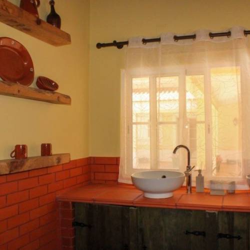 Pegões, PortugalCasa semiadosada "Quinta Dahlia". A 1 km del centro de Pegões, en la periferia, a 12 km del centro de Vendas Novas, a 50 km del centro de Lissabon. Comunitario: terreno en estado natural 5'000 m2 con césped y árboles, patio, piscina (12 x 6 m, 125 - 200 cm de profundidad, Disponible por temporada: 01.Ene. - 31.Dic.). Ducha exterior, mantenimiento de la piscina a través del propietario/jardinero. En el inmueble: lavadora (uso comunitario). Aparcamiento (para 3 coches) en el mismo terreno. Tienda 1 km, supermercado 1.5 km, playa de arena 37 km, piscina cubierta 12 km. Campo de golf (18 hoyos) 28 km, centro ecuestre 15 km. A tener en cuenta: el propietario vive en el mismo terreno. "Quinta Dahlia", casa pareada 3 estancias 110 m2. Con mobiliario funcional y rústico: habitación de paso con 1 cama de matrimonio (140 cm, 200 cm de longitud). Altillo abuhardillado pequeño con 2 camas (90 cm, 195 cm de longitud). 1 dorm. con 1 cama de matrimonio (2 x 90 cm, 200 cm de longitud). Salida a la terraza. Cocina-comedor (horno, lavavajillas, 4 placas de vitrocerámica, tostadora, hervidor de agua eléctrico, microondas, congelador, cafetera eléctrica, horno para pizza) con chiminea nórdica, mesa de comedor, TV satélite y aire acondicionado. Salida a la terraza. Ducha/WC, doble lavabo. Calefacción eléctrica (extra). Calefacción no en todas las estaciones. Suelo de piedra natural. Terraza parcialmente cubierta terraza parcialmente cubierta. Barbacoa. El alojamiento dispone de: cuna. Internet (Wifi, gratis). 132671/AL