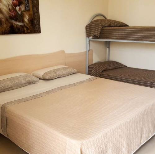 Taviano, ItaliaMarina di Mancaversa a 13 km de Gallipoli: Villa "Sun Beach", pequeña, sencilla. A 7 km del centro de Taviano, a 800 m del mar, a 800 m de la playa. Privado: jardín pequeño 100 m2, Piscina elevada (5 x 3 m, 120 - 120 cm de profundidad, Disponible por temporada: 01.Abr. - 31.Oct.). Ducha exterior, muebles de jardín, barbacoa, mantenimiento de la piscina a través del propietario/jardinero. Acceso por escaleras (8 escalones) hasta la casa. Aparcamiento en el mismo terreno. Tienda 1 km, tienda de comestibles 800 m, supermercado 5 km, restaurante 1 km, bar 800 m, playa rocosa "Marina di Mancaversa" 800 m. Atracciones en los alrededores: Punta della Suina, Punta Pizzo 5 km, Torre San Giovanni 13 km, Otranto 60 km, Castro 45 km, Lecce 50 km, Santa Maria di Leuca 40 km. Villa 5 estancias 90 m2, en planta baja elevada. Con mobiliario sencillo y funcional: salón-comedor con 1 sofá-cama doble y chimenea (sólo con función decorativa), TV. 3 dorm. dobles. 1 dorm. con 1 cama. Pequeña cocina abierta (horno, 4 fuegos, congelador). 2 ducha/bidet/WC. Ningún tipo de calefacción. Terraza-jardín cubierta, jardín pequeño 100 m2. Muebles de terraza, muebles de balcón, barbacoa, tumbonas, rincón para sentarse. El alojamiento dispone de: lavadora, plancha, mosquitera, secador de pelo. Plaza de aparcamiento n. 1 (vallada). Adecuado para familias. 1 mascota / perro. La ropa de cama, las toallas, la limpieza final y los gastos de electricidad están incluidos. LE07508591000009629