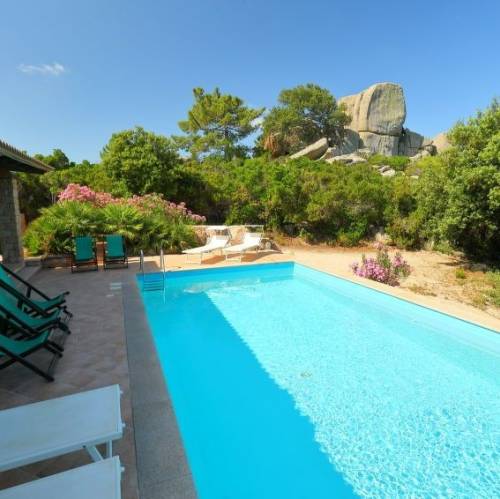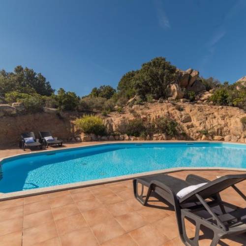 Costa Paradiso, ItaliaVilla "Petra Rossa", amplia, confortable. En el aldea Costa Paradiso, lugar tranquilo, soleado en una colina, a 4 km del mar, en una calle sin salida. Privado: terreno 3'400 m2, piscina (5 x 10 m, 150 cm de profundidad, Disponible por temporada: 01.May. - 17.Oct.). Acceso (camino de tierra). Aparcamiento. Tienda de comestibles 2.5 km, supermercado 2.5 km, restaurante 2.5 km, playa de arena "Li Cossi" 5 km. Atracciones en los alrededores: Isola Rossa 18 km, Vignola mare 18 km. A tener en cuenta: coche recomendable. Animales en los alrededores. Villa 7 estancias 150 m2 en 2 plantas. Con mobiliario confortable: salón-comedor grande con ventanal con chimenea y TV satélite (pantalla plana). Salida a la terraza-jardín. Rincón-cocina (6 fogones, horno, lavavajillas, microondas, congelador, cafetera eléctrica). Planta superior: 2 dorm. dobles. 2 dorm., cada habitación con 2 camas. 2 dorm., cada habitación con 1 x 2 literas. 3 ducha/bidet/WC. Terraza grande parcialmente cubierta. Muebles de terraza, muebles de balcón, barbacoa, tumbonas (6). Vista lejana bonita al mar. El alojamiento dispone de: lavadora, secador de pelo. Internet (Wifi, gratis). 1 mascota / perro. Si el número de personas que ocupan la casa vacacional fuera inferior al máximo posible, no todos los dormitorios estarán disponibles. IUN:Q2581