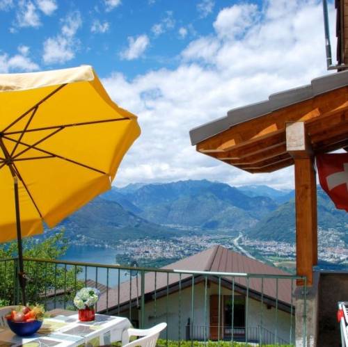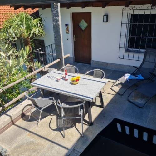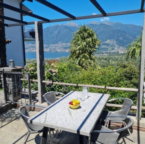 Magadino, SuizaMagadino a 15 km de Locarno: Casa de dos viviendas "Cavriana", moderna, bonita, rodeada de árboles. En la periferia, en el distrito Gambarogno, lugar tranquilo, soleado en un barrio residencial, a 50 m de un bosque, a 2 km de un lago, en una calle sin salida, en el campo. Privado: terraza-jardín, porche, terraza, muebles de jardín, barbacoa. Acceso empinado hasta el terreno. Acceso por escaleras (20 escalones) hasta la casa. Aparcamiento en el mismo terreno. Tienda de comestibles 850 m, restaurante 700 m, parada de autobús "Postauto Linie 352" 500 m, estación de tren "SBB-CFF (Quartino)" 4.5 km. Campo de golf (18 hoyos) 19 km, minigolf 2.2 km, rutas de senderismo desde la casa 10 m. Atracciones en los alrededores: Mercato Luino IT, Mercato Ponte Tresa IT, Mercato Bellinzona (SA), Castelli di Bellinzona, Madonna del Sasso, Locarno-Orselina, Monte Verità, Ascona. Lagos conocidos fácilmente accesibles: Lago Maggiore, Lago di Lugano, Lago di Como. Zona de senderismo Monti di Piazzogna, Valle Verzasca, Vallemaggia, Centovalli, Cardada-Cimetta, Locarno. "Casa Cavriana", apartamento de 2 estancias 50 m2 en el 1° piso. Espacioso y luminoso, con mobiliario moderno y agradable: salón-comedor abierto grande con mesa de comedor, TV cable y canales internacionales (pantalla plana). Salida al balcón. 1 dorm. doble con 1 cama doble (160 cm, 200 cm de longitud). Cocina abierta (horno, lavavajillas, 4 placas de vitrocerámica, tostadora, hervidor de agua eléctrico, microondas, cafetera eléctrica, Cápsulas de café (Nespresso) extra). Ducha/WC. Calefacción por el suelo. Balcón, orientación suroeste, terraza grande parcialmente cubierta. Muebles de terraza, muebles de balcón. Vista panorámica muy bonita al lago, a las montañas y al paisaje. El alojamiento dispone de: secador de pelo. Internet (Wifi, gratis). Plaza de aparcamiento n. 2. A tener en cuenta: apartamento para no fumadores. NL-00003047