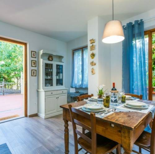 Montescudo, ItaliaResidencia "Rio del sole", rodeada de árboles. A 1.3 km del centro de Montescudaio, a 12 km del mar. Comunitario: parque, piscina protegida (Disponible por temporada: 10.Jun. - 10.Sep.) con sistema de limpieza por electrolysis de sal. Posibilidad de aparcamiento 50 m. Tienda de comestibles 1.2 km, supermercado 9 km, restaurante 350 m, playa de arena "Marina di Cecina" 12 km, playa rocosa "Castiglioncello" 24 km, piscina termal "Calidario" 43 km. Atracciones en los alrededores: Bolgheri 17 km, San Gimignano 60 km, Pisa 60 km, Lucca 80 km, Firenze 120 km. A tener en cuenta: adecuado para familias. Gorro de baño obligatorio. "Rio Del Sole", apartamento de 2 estancias 60 m2, en la planta baja. Con mobiliario confortable y rústico: salón-dormitorio con 1 sofá-cama doble y TV satélite. Salida al jardín. 1 dorm. con 1 x 2 literas, 1 cama doble. Cocina abierta (horno, lavavajillas, 4 Placas de inducción, tostadora, hervidor de agua eléctrico, microondas, cafetera eléctrica). Ducha/bidet/WC. Calefacción eléctrica, aire acondicionado. Terraza-jardín. Muebles de terraza, barbacoa (portátil). El alojamiento dispone de: lavadora, trona, cuna hasta 2 años (extra), secador de pelo. Internet (Wifi, gratis). A tener en cuenta: 1 mascota / perro. Entrada privada. La disponibilidad de las camas es flexible. Aunque haya más camas disponibles que la ocupación máxima, esta no se puede exceder.