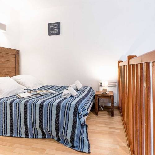 Les Orres, FranciaResidencia "Parc des Airelles". En el aldea Bois Méan, a pie de pista. En el complejo: recepción, Wifi, sauna, zona de spa de uso comunitario a 50 m, calefacción central. Servicio a domicilio de panecillos posibilidad: (extra). Aparcamiento (cubierto, extra). Tienda 50 m, supermercado 500 m, restaurante 50 m. Telesquí 20 m. A tener en cuenta: La foto corresponde a una de las viviendas. "Parc des Airelles", apartamento de 2 estancias 40 hasta 43 m2 en 2 plantas. Luminoso, con mobiliario bonito: salón-dormitorio con 2 posibilidades para dormir, mesa de comedor y alquiler de TV opcional. 1 dorm. con 1 cama de matrimonio. Cocina abierta (lavavajillas, 2 placas de vitrocerámica, tostadora, hervidor de agua eléctrico, microondas, cafetera eléctrica). WC separado, baño o ducha. Planta superior: altillo abuhardillado, abierto con 4 camas. Ducha. Balcón o terraza. A tener en cuenta: apartamento para no fumadores. El alojamiento es una casa tipo ejemplo o un apartamento tipo ejemplo.