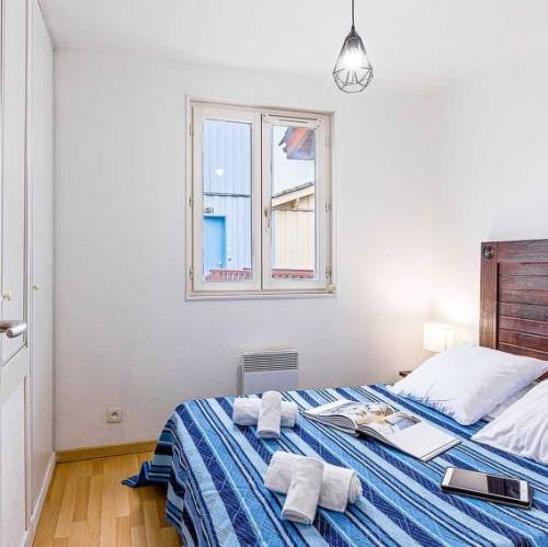 Le Teich, FranciaResidencia "Les Rives Marines". 130 apartamentos en la residencia. A 300 m del río. Comunitario: piscina climatizada, vallada (12 x 10 m, Disponible por temporada: 01.May. - 30.Sep.). Tenis de mesa, petanca. En el complejo: recepción, Wifi, sala para guardar bicicleta, lavadora, secadora (uso comunitario, extra). Servicio a domicilio de panecillos. Aparcamiento. Tienda 500 m, supermercado 4 km, playa de arena "Plage de la Hume" 4 km. Puerto deportivo 500 m, campo de golf (18 hoyos) 10 km. Atracciones en los alrededores: Port de plaisance du Teich 500 m, Réserve ornithologique 400 m, la plage de La Hume 4 km, côte de Cap Ferret & Arcachon, Dune du Pilat, Bordeaux 53 km. Zona de senderismo Parc Naturel des Landes de Gascogne. A tener en cuenta: La foto corresponde a una de las viviendas. Los alojamientos pueden diferir en la superficie habitable, la distribución de las estancias, el equipamiento y el mobiliario. "1 pièce 4 BAT Les Rives Marines" estudio 26 m2. Salón-dormitorio con 1 sofá-cama doble y alquiler de TV opcional. Cabina con 1 x 2 literas. Rincón-cocina (lavavajillas, 4 placas de vitrocerámica, tostadora, hervidor de agua eléctrico, microondas, cafetera eléctrica). Baño, WC separado. Calefacción eléctrica. Terraza. Muebles de terraza.