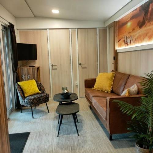 Belfeld, Países BajosResort "EuroParcs Maasduinen", idóneo para niños, rodeado de árboles. En las afueras de la localidad, a 3 km del centro de Belfeld, a orillas del lago, en el campo. Comunitario: piscina cubierta (Disponible por temporada: 01.Abr. - 31.Oct.). Parque infantil. En el complejo: recepción, restaurante, bar, Wifi, gimnasio, tenis de mesa, lavandería, alquiler de bicicletas. Posibilidad de aparcamiento. Tienda 2.7 km, supermercado 2.7 km, estación de tren "Venlo" 10 km. Atracciones en los alrededores: Fun Forest 4 km, Attractiepark Toverland 15 km, Outlet shopping Roermond 17 km, Kasteeltuinen Arcen 18 km, Hertog Jan Brouwerij 20 km, Nationaal Park De Maasduinen 32 km. Lagos conocidos fácilmente accesibles: De Maasplassen 30 km. A tener en cuenta: coche recomendable. Animación en la temporada. El propietario no acepta grupos de adolescentes/jóvenes. La foto corresponde a una de las viviendas. Se pueden reservar alojamientos adicionales. Todas las casas/apartamentos están diseñadas y amuebladas de manera diferente. Los alojamientos pueden diferir en la superficie habitable, la distribución de las estancias, el equipamiento y el mobiliario. "Tiny House 2", estudio mobile home 28 m2. Con mobiliario bonito: salón-comedor con chiminea nórdica, mesa de comedor y TV. Salida a la terraza. Altillo con 1 cama doble. Rincón-cocina (2 Placas de inducción, hervidor de agua eléctrico, microondas/grill). Ducha/WC. Calefacción eléctrica. Terraza. Muebles de terraza. El alojamiento dispone de: trona, cuna (extra). Internet (Wifi, gratis). Plaza de aparcamiento junto a la casa. A tener en cuenta: casa para no fumadores. Solo se aceptan reservas para vacaciones. Se puede cargar un depóstio de 100 EUR por persona en destino.