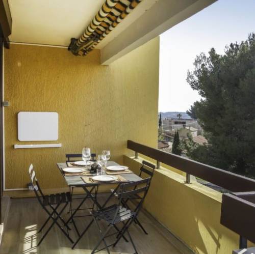 Bandol AOC, FranciaResidencia "Les Jardins de Bandol", de 2 plantas. En la periferia, a 1.5 km del centro de Bandol, a 1.8 km del mar. Comunitario: piscina rectangular vallada (Disponible por temporada: 20.May. - 01.Sep.). Tienda 1.5 km, supermercado 1.5 km, restaurante 1.5 km, panadería 1.5 km, café 1.5 km, estación de tren 1.2 km, playa de arena "La Plage centrale" 2 km. Puerto deportivo 1.8 km, campo de golf (18 hoyos) 3.5 km. Atracciones en los alrededores: Aqualand 8 km. Zona de senderismo Sainte Baume, Sainte Victoire, Calanques Port-Cros, Porquerolles, Ile verte, Embiez, Figuerolles, Cassis. La entrega de llaves se realiza por la agencia Interhome en Saint Cyr Sur Mer, 9 km. Apartamento de 2 estancias 30 m2 en el 2° piso. Luminoso, completamente reformado en 2019, con mobiliario confortable y bonito: salón-comedor con 1 sofá-cama doble (1 x 140 cm, 190 cm de longitud), TV (pantalla plana), aire acondicionado. Salida a la terraza. 1 dorm., pequeño con 1 cama de matrimonio (140 cm, 190 cm de longitud). Salida a la terraza. Rincón-cocina (horno, lavavajillas, 2 placas de vitrocerámica, tostadora, hervidor de agua eléctrico, cafetera eléctrica, Cápsulas de café (Nespresso) extra). Ducha/WC. Aire caliente. Terraza 10 m2, cubierta, orientación sur. Muebles de terraza, barbacoa eléctica. Vista lejana al mar. El alojamiento dispone de: lavadora. Internet (Wifi, extra). Plaza de aparcamiento (1 coche). A tener en cuenta: detector de humo. 83009 000007 2U