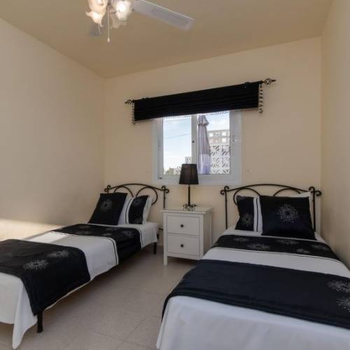 Palm-Mar, EspañaCasa "Sue". A 400 m del mar. Privado: terreno 200 m2, piscina (6 x 3 m, Disponible por temporada: 01.Ene. - 31.Dic.). Ducha exterior. Acceso por escaleras (14 escalones) hasta la casa. Posibilidad de aparcamiento. Supermercado 200 m, restaurante 100 m, playa de piedras 400 m. Campo de golf 3 km. A tener en cuenta: coche recomendable. Casa 3 estancias 100 m2. Con mobiliario funcional: salón-comedor con TV digital. Salida a la terraza. 1 dorm. con 2 camas (90 cm, 190 cm de longitud), baño/WC. 1 dorm. con 2 camas (90 cm, 190 cm de longitud). Cocina (horno, lavavajillas, 4 placas de vitrocerámica, tostadora, hervidor de agua eléctrico, microondas, cafetera eléctrica). Ducha/WC. Terraza. Muebles de terraza. El alojamiento dispone de: lavadora, plancha, trona, cuna, secador de pelo. Internet (Wifi, gratis). A tener en cuenta: casa para no fumadores. VV-38-4-0088505