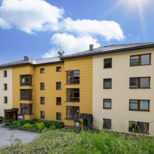 Sotkamo, FinlandiaEste apartamento en casa adosada de troncos ubicada en el centro de esquí de Vuokatti fue terminado en 2003. Superficie 59 m². Combinado salón-cocina con un sofá-cama para una persona (120 cm ancho), dos dormitorios, uno con cama gemela, el otro con camas individuales para dos personas, sauna (calefacción eléctrica), baño, dos WC y veranda. Conexión a Internet. Kajaani a 33 km, Sotkamo a 7 km. Pista de esquí de Vuokatti a 100 m, sendero a campo traviesa a 150 m. Lago pequeño a 1,5 km. Plancha y tabla para planchar, secador de pelo. No se permiten mascotas. Check in a las 16.00 h del día de llegada y check out a las 12.00 h del día de salida, también en caso de la estancia de fin de semana.