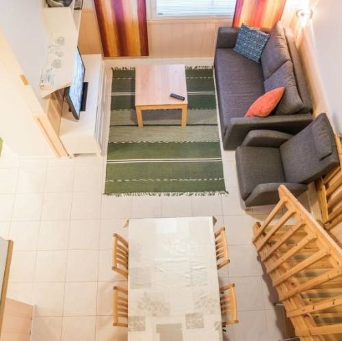 Sotkamo, FinlandiaEste apartamento en casa adosada de troncos ubicada en el centro de esquí Vuokatti fue terminada en 2003. Superficie 59 m². Combinado salón-cocina con sofá-cama para dos personas, dos dormitorios, uno con cama gemela y otro con camas individuales para dos personas, sauna (calefacción eléctrica), baño, dos WC y veranda. Conexión a Internet (la señal no es muy buena). Kajaani a 33 km, Sotkamo a 7 km. Pista de esquí Vuokatti a 150 m, sendero a campo traviesa a 150 m. Lago pequeño a 1,5 km. No se permiten mascotas. Check in a las 16 h el día de llegada y check out a las 12 h el día de salida, también en caso de una estancia de fin de semana.