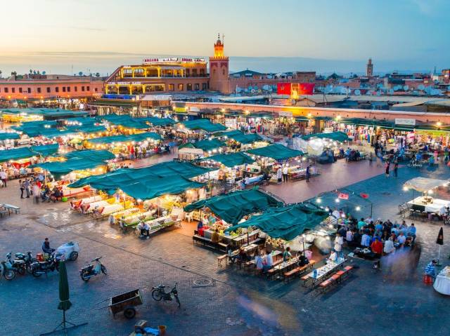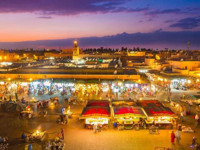 Es una de las ciudades más importantes de Marruecos. Se ubica al pie del Atlas, a 466 msnm de altura. Posee numerosos monumentos patrimonio de la Humanidad. Es, junto a Mequinez, Fez y Rabat, una de las cuatro ciudades imperiales de Marruecos. La ciudad posee el mercado tradicional (suq) más grande del país y una de las plazas más concurridas de África y del mundo. En la plaza se citan bailarines y músicos. Por la noche, la plaza...más