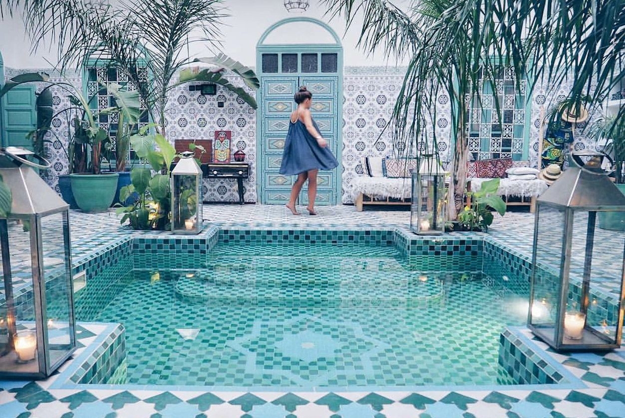 Marrakesh, Marruecos##Ubicacin del establecimiento \nSi te alojas en Riad Kniza, en Marrakech (Medina), podrs llegar fcilmente a Palacio Dar el Bacha y a Plaza Jamaa el Fna. Este riad de 5 estrellas se encuentra muy cerca de Jardn Majorelle y Cyber Parc.\n\n##Habitaciones \nTe sentirs como en tu propia casa en una de las 11 habitaciones con aire acondicionado y reproductor de DVD. La conexin a Internet wifi gratis te mantendr en contacto con los tuyos; tambin podrs ver tu programa favorito en el televisor con canales por cable. El bao privado con ducha y baera combinadas est provisto de artculos de higiene personal gratuitos y secador de pelo. Las comodidades incluyen caja fuerte, una zona de estar separada y telfono.\n\n##Servicios de ocio, spa y Premium \nCon piscina al aire libre y muchas otras instalaciones recreativas a tu disposicin, no te quedar ni un minuto libre. Tienes tambin una terraza en la azotea y una terraza donde sentarte a contemplar el paisaje. Otros servicios de este riad incluyen conexin a Internet wifi gratis, servicios de conserjera y asistencia turstica y para la compra de entradas.\n\n##Para comer \nTienes un restaurante y una cafetera a tu disposicin para comer algo, pero si lo prefieres, puedes llamar al servicio de habitaciones las 24 horas de este riad. Apaga la sed con tu bebida favorita en el bar o lounge.\n\n##Servicios de negocios y otros \nTendrs centro de negocios, servicio de tintorera y servicio de recepcin 24 horas a tu disposicin. Ests organizando un evento en Marrakech? En este riad tienes a tu disposicin 32 metros cuadrados de espacio con salas de reuniones. Pagando un pequeo suplemento podrs aprovechar prestaciones como servicio de transporte al aeropuerto (ida y vuelta) (disponible las 24 horas) y aparcamiento sin asistencia gratuito.