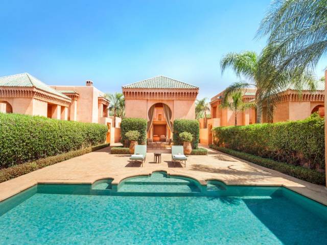 Marrakesh, MarruecosInstalacionesEl establecimiento dispone de conexión a Internet para una estancia confortable y reponedora. Si lo necesitan, los huéspedes pueden hacer uso de las plazas de aparcamiento del establecimiento. También se ofrece servicio de traslado.HabitacionesTodos los alojamientos disponen de aire acondicionado, salón, cocina y cuarto de baño. En la mayoría de los alojamientos hay terraza. Los alojamientos disponen de dormitorios separados o cama king size. Además, hay caja fuerte disponible. Los alojamientos también incluyen cafetera/tetera. El equipamiento se completa con teléfono, TV y reproductor de DVD. Los huéspedes también cuentan con zapatillas de casa en su alojamiento. En los cuartos de baño hay ducha, bañera, bañera de hidromasaje, secador de pelo y albornoces.Deporte y ocioPara quien no desee renunciar a los deportes durante sus viajes, en el recinto del hotel se puede disfrutar de actividades como bicicleta/bicicleta de montaña. También hay golf y parapente disponibles por un cargo extra. En la zona de deportes acuáticos se ofrece gimnasia acuática. La oferta deportiva y de ocio del establecimiento incluye un gimnasio y yoga. El establecimiento cuenta con una zona de bienestar con hamam y masajes, así como con spa y salón de belleza, disponibles por un cargo extra. ComidasSe puede reservar desayuno.