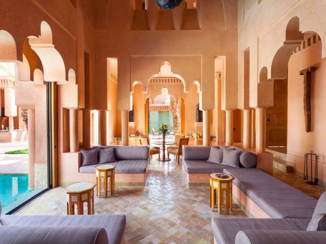 Marrakesh, MarruecosTranquilidad y elegancia prevalecen en este hotel del centro de Marrakech con hermosos salones al aire libre, cómodos sillones, piscina, habitaciones y suites delicadamente decoradas y vistas panorámicas a las cimas nevadas de las montañas del Atlas...Disfrute de la calma y la tranquilidad y relájese a tan sólo unos metros del bullicioso centro de la Medina. Las esculturas de madera y las pinturas de artistas marroquíes decoran los luminosos interiores del hotel con formas suaves y delicadas. * City tax no incluida.