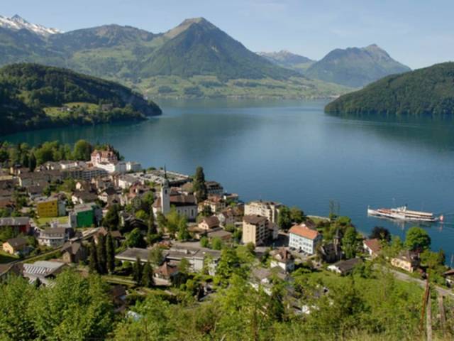 Vitznau es una comuna suiza del cantón de Lucerna, situada en el distrito de Lucerna, en la ribera superior del lago de los Cuatro Cantones. Limita al norte con la comuna de Arth , al este y al sur con Gersau , al sur con Ennetbürgen , y al oeste con Weggis. Vitznau se halla en una idílica bahía del Lago de los Cuatro Cantones al pie del Rigi. El destino turístico en la Suiza Central es punto de partida popular de...más