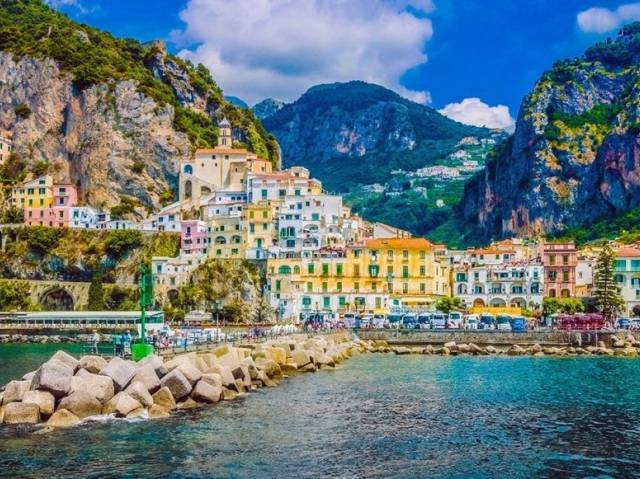 Amalfi es una comuna y archidiócesis italiana de la región de Campania, situada a la orilla del golfo de Salerno, a 75 km de Nápoles. Se encuentra en la boca de una profunda garganta al pie del Monte Cerreto, de 1315 m de altura, rodeada por acantilados. Amalfi es parte de la lista de lugares Patrimonio de la Humanidad de la Unesco. Amalfi es el principal pueblo de la costa en la que se localiza,...más