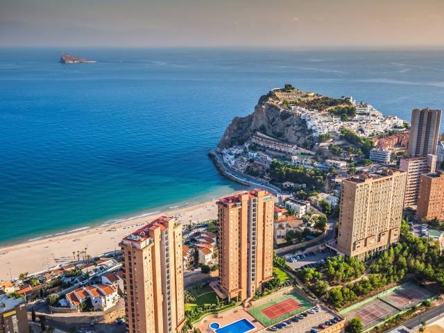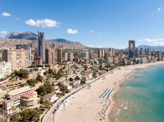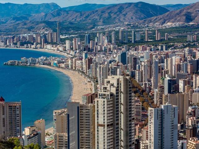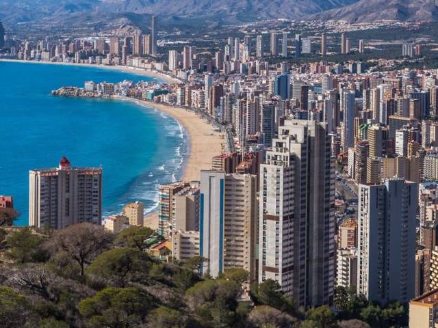 Benidorm es una ciudad y municipio español de la provincia de Alicante, en la Comunidad Valenciana. Está situada a orillas del mar Mediterráneo, en la comarca de la Marina Baja, de la que es su municipio más denso y poblado. Es la capital turística de la Comunidad Valenciana. Conocida como la «Nueva York del Mediterráneo», Benidorm es la ciudad con más rascacielos de España, la ciudad con más rascacielos...más