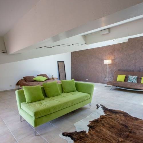 Grimaud, FranciaVilla "Lei Suve", moderna. A 10 km del centro de Grimaud, a 4.5 km del centro de Sainte Maxime, a 12 km del centro de Saint Tropez, area residencial (villas), a 1.4 km del mar. Privado: terreno 1'550 m2 (vallada), jardín en diferentes niveles, cuidado, piscina (12 x 5 m, Disponible por temporada: 01.Ene. - 31.Dic.) con alarma y sistema de limpieza por electrolysis de sal. Ducha exterior, petanca. Acceso empinado durante 30 m. Aparcamiento (para 3 coches) en el mismo terreno. Tienda 4.5 km, playa de arena "Beauvallon" 1.4 km. Campo de golf (18 hoyos) 2 km. "Lei Suve (GRI175)", casa 5 estancias 200 m2 en 2 plantas, orientación sur. Luminoso, con mobiliario moderno y de buen gusto: salón-comedor con chimenea (sólo con función decorativa), mesa de comedor y TV satélite. Salida a la terraza. 1 dorm. con Vestidor con 1 cama de matrimonio (180 cm, 200 cm de longitud), WC separado y baño/ducha. Salida a la terraza. Cocina abierta (horno, lavavajillas, 4 placas de vitrocerámica, tostadora, hervidor de agua eléctrico, microondas, congelador, cafetera eléctrica). Salida a la terraza. Ducha/WC. Planta superior: 1 dorm. con 2 camas (90 cm, 190 cm de longitud). Salida al balcón. 1 dorm. con 1 cama de matrimonio (160 cm, 200 cm de longitud). Salida al balcón. Ducha, WC separado. Calefacción, aire acondicionado. Balcón, 2 terrazas cubierta. Muebles de terraza, tumbonas. Vista panorámica espléndida al mar. El alojamiento dispone de: lavadora, secadora, plancha, trona, cuna. Internet (Wifi, gratis). 83068000566PA