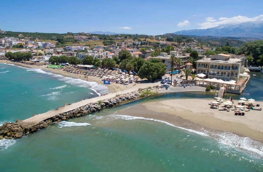 Kalyves se encuentra a unos 20 km al este de Chania en el área de Apokoronas. Está en la costa a la entrada de Souda Bay . Básicamente consiste en un largo camino, con casas que se abren directamente a él, con un callejón ocasional detrás. La ciudad está limitada a un lado por el mar y al otro por colinas bajas. En la colina de Kastelli, al este de la ciudad, se encuentran los restos del asentamiento fortificado Castello...más