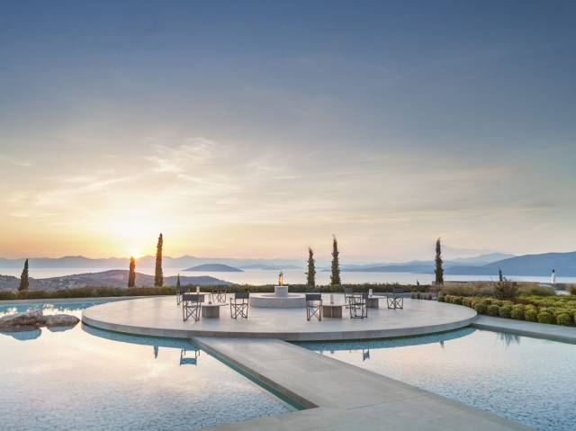 El hotel se encuentra en una de las regiones más pintorescas del Peloponeso, a sólo 185 Km de Atenas. Está situado frente a la maravillosa isla de Spetses, con vistas a la bahía natural de Porto Heli. Es el punto de partida ideal para visitar Epidauro, Nauplia, Micenas, Monemvasia y las islas del Golfo Sarónico.Tiene 205 habitaciones en total, incluidas 8 suites Junior y 2 suites Presidencial. Cuenta con caja fuerte, servicio de cambio de divisa, sala de juegos y de TV, bar, restaurante y sala de conferencias. Además, hay servicio de habitaciones y, para los más pequeños, club infantil y parque.Todas las habitaciones y suites incluyen abundancia de servicios, como cuarto de baño, aire acondicionado, TV vía satélite, teléfono de línea directa, secador de pelo, balcón con vistas impresionantes, nevera y calefacción central. Existen habitaciones especiales para personas de movilidad reducida.Hay piscina exterior con zona infantil, bar y gimnasio.