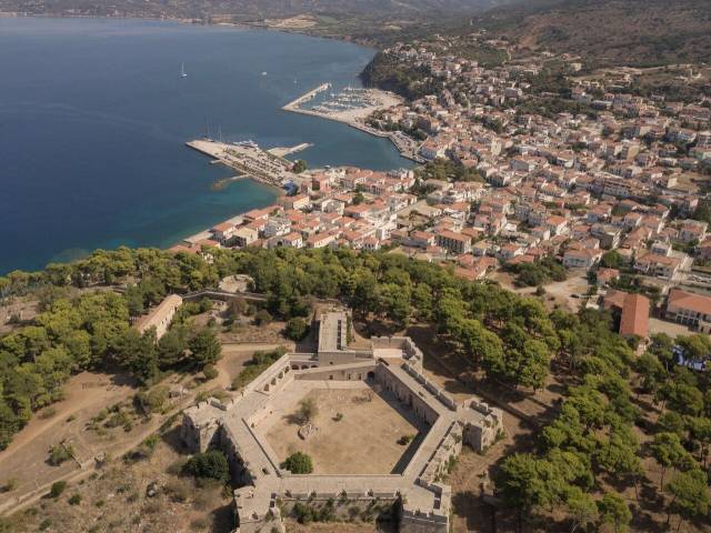 El suelo sobre Navarino es de color rojo, y es notable por la producción de una gran cantidad de esquila , que se usan en medicina. Las rocas, que se muestran en todas direcciones a través de un suelo escaso pero rico, son de piedra caliza y presentan una apariencia general de improductividad alrededor del castillo de Navarino; y la ausencia de árboles está mal compensada por la profusión de salvia, escobas, cistus y otros arbustos que parten de las innumerables...más