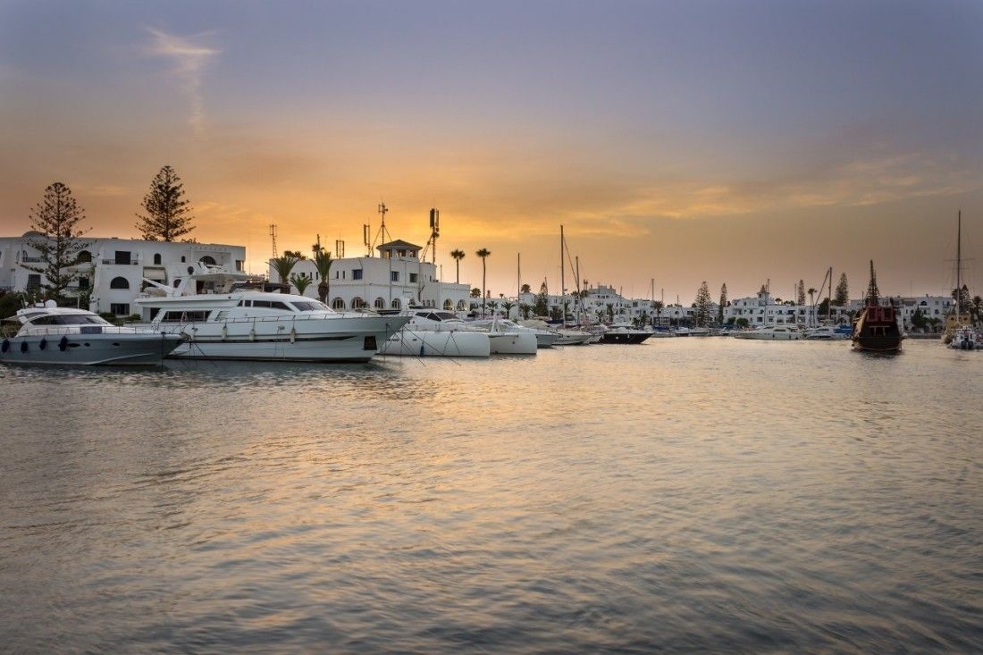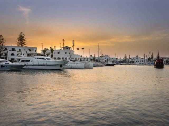 Port El Kantaoui es un complejo turístico a 10 kilómetros al norte de la ciudad de Sousse , en el centro de Túnez . Fue construido en 1979 específicamente como centro turístico alrededor de un gran puerto artificial que proporciona amarre con 340 amarres para yates de lujo, alberga actividades deportivas desde esquí acuático hasta parapente y varios campos de golf. En estilo, la zona portuaria de Port El Kantaoui está diseñada como un...más