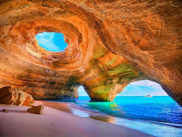 Praia da Rocha es una playa y un área construida en el Océano Atlántico en la sección sur del concelho de Portimão , Algarve , sur de Portugal . La cercana Praia dos Três Castelos es conocida por las extrañas y espectaculares formaciones rocosas de piedra caliza que se encuentran a lo largo del agua. En algunos lugares, los acantilados son escarpados y caen directamente hacia la playa, pero en otros, la erosión ha...más