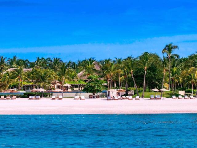 El St. Regis Punta Mita Resort, situado en un tranquilo istmo de 22 exuberantes hectáreas con espectaculares vistas al Océano Pacífico, ofrece a sus huéspedes todos los lujos de un refugio privado e íntimo donde el arte y la naturaleza se entrelazan maravillosamente. Déjese seducir por los mimos del lujoso Remde Spa, juegue en los dos campos de golf Jack Nicklaus Signature o en el centro de tenis situado en un palmeral. Las 120 habitaciones y suites exquisitamente decoradas con cautivadoras vistas al mar o a los jardines ofrecen un toque rústico provenzal combinado con arte mexicano y mobiliario artesanal. El servicio de mayordomo de St. Regis atiende cualquier petición, de día o de noche. Disfrute de un oasis residencial de mimos, tenis y golf de primera clase y un servicio a medida en la seductora costa del Pacífico mexicano.