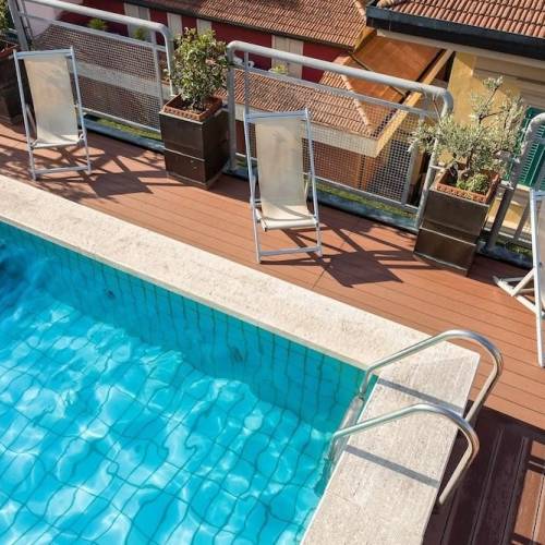 Montecatini-Terme, ItaliaEl hotel está situado a un paseo de 5 minutos del centro de la ciudad balneario de Montecatini Terme. En las inmediaciones encontrará todo lo que pueda necesitar, como bares, restaurantes, tiendas y transporte. Si quiere realizar excursiones de un día, puede visitar la zona costera de Forte dei Marmi (a 50 km), o simplemente viajar a Florencia o a Pisa (ambas a 40 km).Este hotel urbano, adecuado para familias, está totalmente climatizado y cuenta con un total de 70 habitaciones, vestíbulo con recepción 24 horas, caja fuerte, cafetería, bar y restaurante. Además, hay sala de TV e instalaciones para conferencias. Podrá hacer uso del servicio de habitaciones y dejar su coche en el aparcamiento o en el garaje cubierto.Las habitaciones disponen de cuarto de baño privado con ducha, secador de pelo, teléfono de línea directa, TV vía satélite/por cable, minibar y caja fuerte. Además, cuentan con camas dobles, aire acondicionado y calefacción centrales, así como con balcón o terraza.El hotel dispone de una piscina al aire libre.Se ofrece desayuno continental o de bufet, mientras que el almuerzo y la cena se pueden escoger de un menú.