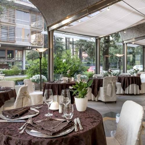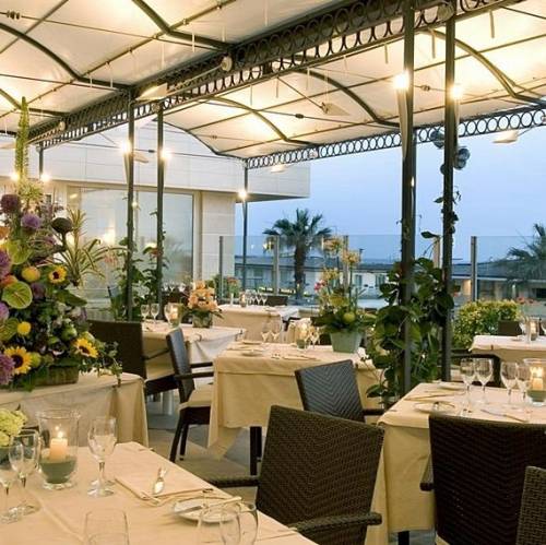 Montecatini-Terme, Italiael restaurante "La Veranda" ofrece una selección de menús que ponen de relieve la tradición de la cocina toscana y combinaciones innovadoras de la cocina spa. En el borde de la piscina termal, el nuevo bar lounge Bioaquam Café, un entorno único donde se pueden organizar fiestas temáticas, fiestas y spa.
