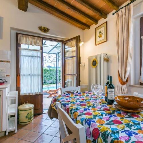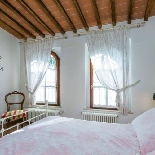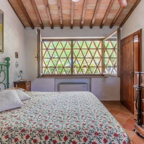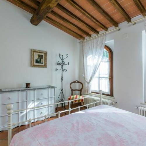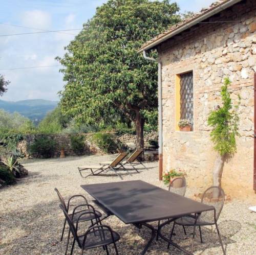 Colle di Val d\'Elsa, ItaliaCasa de campo "Antico Borgo San Lorenzo", muy bonita, agradable, confortable del siglo 11°, reformada en 1998, rodeada de prados, campos y viñedos. 5 casas en la residencia. 10 apartamentos en la residencia. A 4 km del centro de Colle di Val d'Elsa, a 14 km del centro de San Gimignano, a 24 km del centro de Siena, lugar aislado, soleado en una colina, a 70 km de la playa, en el campo. Comunitario: terreno 5 ha, jardín (no está vallado) con plantas y flores, pradera, piscina (16 x 8 m, 140 - 150 cm de profundidad, Disponible por temporada: 15.Abr. - 31.Oct.). Ducha exterior, tenis de mesa, terraza, barbacoa, parque infantil. En el inmueble: futbolín, lavadora, secadora (uso comunitario, extra), alquiler de bicicletas. Acceso durante 1.2 km (camino de tierra). Aparcamiento (cubierto) en el mismo terreno. Tienda de comestibles 4 km, supermercado 4 km, panadería 3 km, estación de tren "Colle di Val d'Elsa" 4 km, playa de arena "Cecina Mare" 73 km, piscina cubierta 6 km. Rutas de senderismo desde la casa 100 m. Atracciones en los alrededores: Monteriggioni 12 km, Certaldo 25 km, Volterra 32 km, Firenze 60 km, Montalcino 66 km. A tener en cuenta: coche recomendable. Adecuado para familias, equipamiento para bebés (incluido). Adecuado para eventos. Bajo petición: transfer desde el aeropuerto a la vivienda de vacaciones. Venta local de productos de granja. Todas las casas/apartamentos están diseñadas y amuebladas de manera diferente. "Antico Borgo S Lorenzo Ginestra", casa 3 estancias 80 m2, en planta baja elevada. Vivienda adecuada para 4 adultos + 1 niño. Completamente reformada, con mobiliario de buen gusto y agradable: 1 dorm. con 1 cama doble. 1 dorm. con 3 camas. Cocina-comedor (horno, lavavajillas, 4 fuegos, cafetera eléctrica) con mesa de comedor y TV satélite. Ducha/WC. Calefacción de gas, aire acondicionado. Suelo de piedra natural. Mobiliario confortable de estilo rural. Terraza-jardín, jardín pequeño. Muebles de terraza. Vista bonita a la piscina y al paisaje. El alojamiento dispone de: caja fuerte, mosquitera, trona, cuna hasta 2 años, secador de pelo. Internet (Wifi, gratis). Plaza de aparcamiento n. 1 (cubierto). A tener en cuenta: adecuado para familias. Apartamento para no fumadores. 1 mascota / perro. Entrada privada.