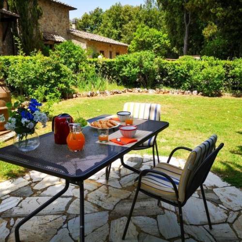 Colle di Val d\'Elsa, ItaliaCasa de campo "Antico Borgo San Lorenzo", muy bonita, agradable, confortable del siglo 11°, reformada en 1998, rodeada de prados, campos y viñedos. 5 casas en la residencia. 10 apartamentos en la residencia. A 4 km del centro de Colle di Val d'Elsa, a 14 km del centro de San Gimignano, a 24 km del centro de Siena, lugar aislado, soleado en una colina, a 70 km de la playa, en el campo. Comunitario: terreno 5 ha, jardín (no está vallado) con plantas y flores, pradera, piscina (16 x 8 m, 140 - 150 cm de profundidad, Disponible por temporada: 15.Abr. - 31.Oct.). Ducha exterior, tenis de mesa, terraza, barbacoa, parque infantil. En el inmueble: futbolín, lavadora, secadora (uso comunitario, extra), alquiler de bicicletas. Acceso durante 1.2 km (camino de tierra). Aparcamiento (cubierto) en el mismo terreno. Tienda de comestibles 4 km, supermercado 4 km, panadería 3 km, estación de tren "Colle di Val d'Elsa" 4 km, playa de arena "Cecina Mare" 73 km, piscina cubierta 6 km. Rutas de senderismo desde la casa 100 m. Atracciones en los alrededores: Monteriggioni 12 km, Certaldo 25 km, Volterra 32 km, Firenze 60 km, Montalcino 66 km. A tener en cuenta: coche recomendable. Adecuado para familias, equipamiento para bebés (incluido). Adecuado para eventos. Bajo petición: transfer desde el aeropuerto a la vivienda de vacaciones. Venta local de productos de granja. Todas las casas/apartamentos están diseñadas y amuebladas de manera diferente. "Antico Borgo San Lorenzo - Fico", apartamento de 3 estancias 75 m2, en la planta baja. Vivienda adecuada para 4 adultos + 2 niños. Espacioso, completamente reformado, con mobiliario bonito y de buen gusto: salón-dormitorio con 1 sofá-cama doble y TV satélite. 1 dorm. con 1 cama doble. 1 dorm. con 2 camas. Cocina (horno, lavavajillas, 4 Placas de inducción, cafetera eléctrica) con mesa de comedor. Salida a la terraza. Ducha/bidet/WC. Calefacción de gas, aire acondicionado. Suelo de piedra natural. Mobiliario confortable de estilo rural. Terraza, terraza-jardín. Muebles de terraza. Vista bonita al paisaje. El alojamiento dispone de: mosquitera, trona, cuna hasta 2 años, secador de pelo. Internet (Wifi, gratis). Plaza de aparcamiento n. 2 (cubierto). A tener en cuenta: adecuado para familias. Apartamento para no fumadores. 1 mascota / perro. Entrada privada.