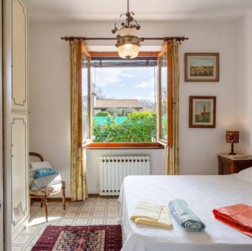 Lucca, ItaliaCasa de campo "Daussiè", reformada en 2014. Alojamiento compuesto de edificio principal y edificio anexo, a 1.5 km del centro de Castelvecchio di Compito, a 17 km del centro de Lucca, a 28 km del centro de Pisa, a 40 km del mar. Privado: terreno 5'000 m2 (vallada), jardín con árboles, pradera, piscina (12 x 6 m, 150 cm de profundidad, Disponible por temporada: 01.May. - 02.Oct.) con sistema de limpieza por electrolysis de sal. Ducha exterior, cenador. En el inmueble: tenis de mesa, futbolín, alarma. A disposición: bicicletas (4). Posibilidad de cocinero (extra). Acceso durante 900 m (camino de tierra). Aparcamiento en el mismo terreno. Tienda 1.4 km, supermercado 6 km, playa de arena 40 km. Atracciones en los alrededores: Collodi (Pinocchio Park) 23 km, Montecatini Terme 27 km, San Giuliano Terme 23 km, Firenze 70 km, Viareggio 41 km, Riomaggiore (5 Terre) 101 km. Lagos conocidos fácilmente accesibles: Lago di Massaciuccoli 41 km, Torre del Lago 43 km. Zona de senderismo Levigliani Antro del Corchia Park 67 km. Casa 8 estancias 200 m2 en 2 plantas. Luminoso, con mobiliario antiguo y de buen gusto: salón con chimenea, TV satélite, radio, CD y DVD. Salón-dormitorio con 1 cama de matrimonio (160 cm), estufa. Salida al jardín. 1 dorm. con 1 cama de matrimonio (160 cm). Salida a la terraza. 1 dorm. con 1 cama de matrimonio (160 cm), ducha/WC. Salida al jardín. Cocina abierta (horno, lavavajillas, 4 fuegos, tostadora, hervidor de agua eléctrico, microondas, congelador, cafetera eléctrica) con mesa de comedor, estufa. Salida a la terraza. Ducha/WC. Planta superior: habitación de paso con 1 cama de matrimonio (160 cm), ducha/WC. Habitación de paso con 1 cama de matrimonio (160 cm). 1 dorm. con 2 camas. 1 dorm. con 1 cama de matrimonio (160 cm). Ducha/WC. Calefacción de leña, aire acondicionado. Terraza 60 m2 parcialmente cubierta. Muebles de terraza, barbacoa, tumbonas, trastero. Vista panorámica. El alojamiento dispone de: lavadora, plancha, trona, cuna hasta 2 años. Internet (Wifi, gratis). Plaza de aparcamiento junto a la casa. A tener en cuenta: apartamento para no fumadores. Permitido máximo 2 mascotas / perros. No hay conexión interna entre las diferentes unidades. Si el número de personas que ocupan la casa vacacional fuera inferior al máximo posible, el edificio anexo no estará disponible.