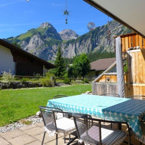 Kandersteg, SuizaCasa unifamiliar "Chalet Marietta", amplia, agradable, confortable de 2 plantas. Lugar tranquilo, soleado en una pendiente, en un barrio residencial. Privado: jardín grande, cuidado con césped y plantas. En el inmueble: calefacción central. Garaje individual. Aparcamiento/garaje para vehículos pequeños/medios. Tienda de comestibles 850 m, restaurante 50 m, parada de autobús 200 m, estación de tren 1 km, piscina 1 km, piscina cubierta 1 km. Tenis 1 km, rutas de senderismo desde la casa, telecabina, pista de esquí de fondo 50 m, pista de hielo 1 km. Atracciones en los alrededores: Oeschinensee, Blausse. Zonas de esquí populares fácilmente accesibles: Adelboden - Lenk, Nordic Arena Kandersteg. Zona de senderismo Sunnbüel - Gemmi, Lötschental. Chalet de madera 4 estancias 120 m2 en 2 plantas, orientación suroeste. Espacioso y luminoso, con mobiliario muy confortable y de buen gusto: salón-comedor grande con ventanal con chimenea, rincón-comedor, TV satélite y radio. Salida al balcón. 1 dorm., grande con 1 cama doble (2 x 90 cm, 200 cm de longitud), baño, bidet y WC separado. Grande cocina (horno, lavavajillas, 4 placas de vitrocerámica, microondas, cafetera eléctrica, set de Fondue (queso)) con pasa-platos. En planta inferior: 2 dorm., cada habitación con 2 camas (90 cm, 200 cm de longitud). Ducha/WC. Balcón grande, orientación sur. Muebles de balcón. Vista panorámica espléndida a las montañas, al valle y a la localidad. El alojamiento dispone de: lavadora, cuna hasta 3 años. Internet (Wifi, gratis). A tener en cuenta: adecuado para familias. Apartamento para no fumadores.