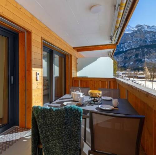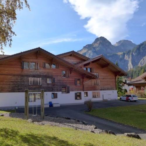 Kandersteg, SuizaCasa con varias viviendas bonita de 3 plantas del año 2018. Lugar soleado en un barrio residencial, a 20 m del río. En el inmueble: sala guardaesquís, calefacción central, lavadora, secadora (uso comunitario). Aparcamiento junto a la casa. Tienda, restaurante 500 m, estación de tren 400 m, piscina 800 m. Tenis 800 m, rutas de senderismo desde la casa 50 m, telecabina 1.4 km, remontes 1.4 km, pista de esquí de fondo 600 m, pista de hielo 400 m, parque infantil 1 km. Atracciones en los alrededores: Oeschinensee, Blausee. Zonas de esquí populares fácilmente accesibles: Adelboden - Lenk, Nordic Arena Kandersteg. Zona de senderismo Sunnbüel - Gemmi, Gasterntal. A tener en cuenta: el propietario vive en el mismo inmueble. Vías del tren en la proximidad. "beim Ahorn", apartamento de 2 estancias en el ático. Espacioso y luminoso, con mobiliario confortable y agradable: salón-comedor abierto con 1 sofá-cama (140 cm, 200 cm de longitud), chiminea nórdica, mesa de comedor y radio. Salida al balcón. 1 dorm. con 1 cama doble (140 cm, 200 cm de longitud). Salida al balcón. Cocina abierta (horno, lavavajillas, 4 placas de vitrocerámica, tostadora, hervidor de agua eléctrico, cafetera eléctrica, Cápsulas de café (Delizio), horno Raclette, set de Fondue (queso)). Ducha/WC. Balcón, orientación sur y orientación este, 2 balcones pequeños, orientación este. Muebles de balcón. Vista espléndida a las montañas y al paisaje. El alojamiento dispone de: Internet (Wifi, gratis). Plaza de aparcamiento (1 coche). A tener en cuenta: adecuado para familias. Apartamento para no fumadores. Detector de humo, extintores.