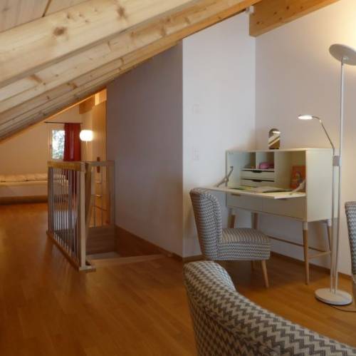 Kandersteg, SuizaChalet tipo suizo "Haus Lohnerblick", bonito de 3 plantas. En la localidad, a 500 m del centro, lugar tranquilo, soleado en un barrio residencial, a 200 m de un bosque. En el inmueble: sala para guardar bicicleta, sala guardaesquís, lavadora, secadora (uso comunitario), secadero. Aparcamiento junto a la casa. Tienda, restaurante 400 m, estación de tren "Kandersteg" 700 m, piscina 800 m. Tenis 800 m, rutas de senderismo desde la casa 50 m, telecabina 1 km, remontes 1 km, pista de esquí de fondo 50 m, pista de hielo 800 m, parque infantil 200 m. Atracciones en los alrededores: Oeschinensee, Blausee. Zonas de esquí populares fácilmente accesibles: Nordic Arena Kandersteg, Adelboden-Lenk. Zona de senderismo Sunnbüel - Gemmi, Gasterntal. Apartamento en dos niveles 4 estancias 110 m2 en 2 plantas, en planta superior. Espacioso y luminoso, parcialmente abuhardillado, con mobiliario muy confortable y de buen gusto: salón-comedor abierto con rincón-comedor, TV cable, radio y equipo de música. Salida al balcón. 1 dorm. con 2 camas (90 cm, 200 cm de longitud). Sala de juegos pequeña. Cocina abierta (horno, lavavajillas, 4 placas de vitrocerámica, hervidor de agua eléctrico, cafetera eléctrica, Cápsulas de café (Nespresso) extra, horno Raclette, set de Fondue (queso)). Baño/ducha/WC. Calefacción por suelo. Planta superior: altillo abierto con ventanal. 1 dorm. con 2 camas (90 cm, 200 cm de longitud). Ducha/WC. Balcón, orientación sur y orientación oeste. Muebles de balcón. Vista panorámica espléndida a las montañas y al paisaje. El alojamiento dispone de: secador de pelo. Internet (Wifi, gratis). Plaza de aparcamiento (1 coche) junto a la casa. A tener en cuenta: apartamento para no fumadores.