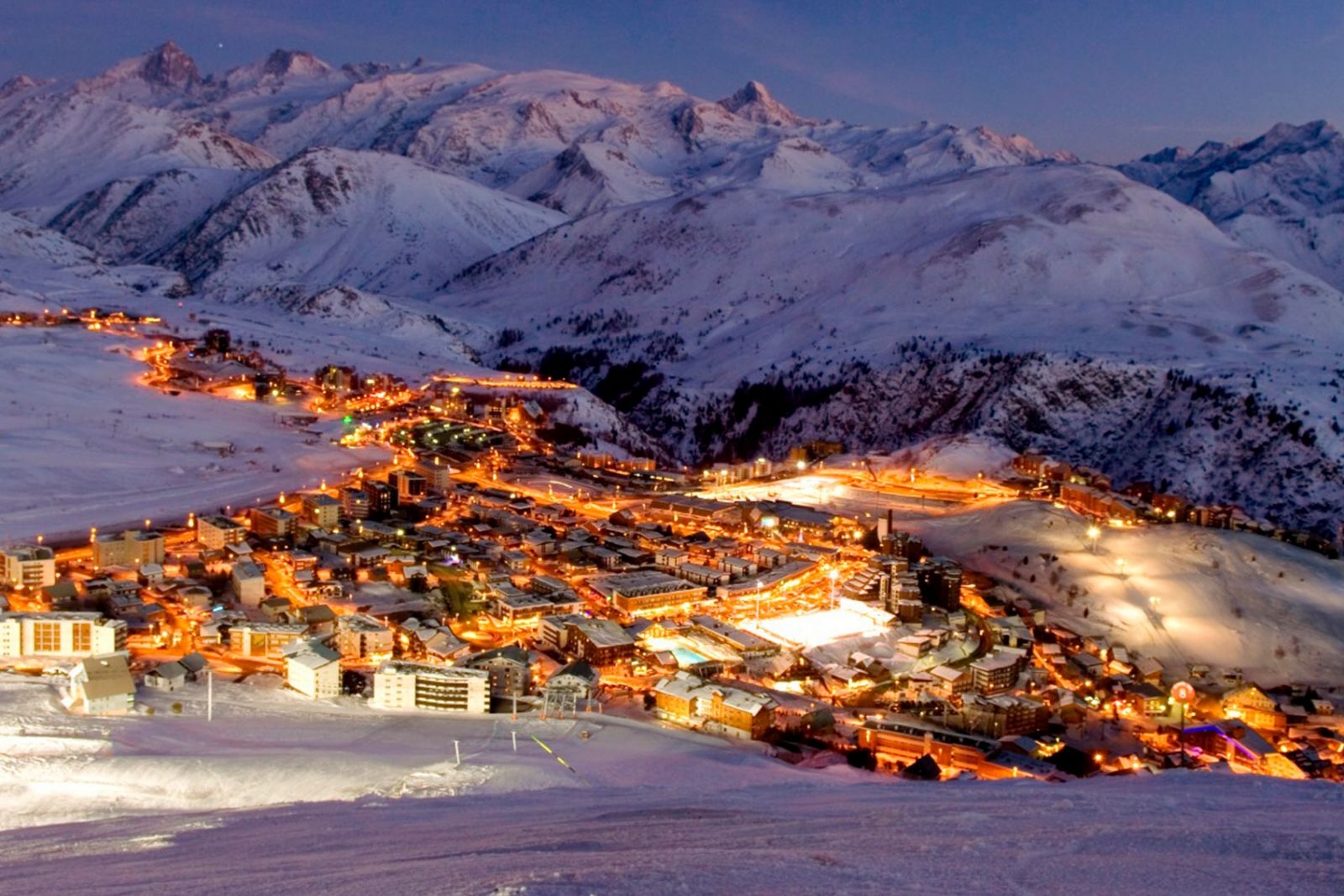 Desde que acogiera los Juegos Olímpicos de Grenoble 68, Alpe d´Huez es una de las grandes entre las estaciones de esquí de Europa y, por supuesto, de Francia. Tiene un imponente desnivel máximo de 2,200 metros y la pista más larga de los Alpes, la Sarenne, una negra de 16 Km. Por si ello fuera poco es una de las pocas estaciones que recibe la categoría de Excelente para todo tipo de esquiadores, lo que la convierte en destino ideal para grupos con distintas habilidades. Las vistas desde...más
