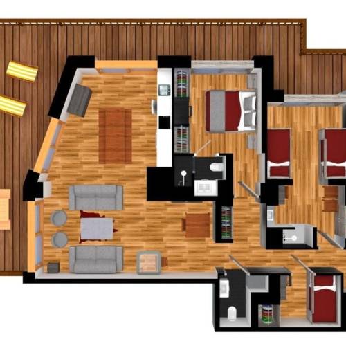 Val Thorens, FranciaSituado en la zona tranquila de Val Thorens, Les Balcons, el chalet Val 2400 dispone de 27 apartamentos de alto standing que pueden acoger de 4 a 12 personas. Desde su balcón, tendrá una vista excepcional de las pistas y del resort. Apreciará el encanto de la estufa austriaca en una sala de estar de madera. Un espacio de relajación con sauna y hammam está a su disposición.* Distancias: - Desde pistas: 150 m / ida y vuelta en esquí (se requiere nivel intermedio) - Desde los primeros remontes: 300 m - Desde el centro de la estación: 5-10 minutos a pie - Desde la escuela de esquí: 5-10 minutos andando Equipamiento en la residencia: - Zona de relax (sauna/hammam) abierta de domingo a viernes de 10 a 20 horas (sin vigilancia) * - Acceso a Internet inalámbrico en cada apartamento - Pub Red Fox abierto todos los días de 16:00 a 02:00 * - Tienda de alquiler de esquís Sport 2000 Equipamiento común a todos los apartamentos: - Cocina totalmente equipada con lavavajillas, microondas, vitrocerámica, horno, frigorífico y congelador, tostador, cafetera de filtro, tetera. - Salón con estufa austriaca - Acceso a la sauna y al hammam de domingo a viernes de 10 a 20 h * - Las camas estarán hechas a su llegada (excepto las camas del salón) - Para las camas de la sala de estar: se proporciona ropa de cama, una manta y una almohada. - 1 toalla grande y 1 toalla pequeña por persona - Cambio de toallas en media estancia - Kit de limpieza de bienvenida (1 paño de cocina, 2 pastillas para lavavajillas, 1 esponja, 1 bote de 100ml de detergente líquido y 1 bote de 100ml de producto de limpieza) - Limpieza final de estancia (excepto cocina/vajilla, balcón y papeleras) - Televisión digital en pantalla plana - Acceso inalámbrico en el apartamento - Taquillas de esquí con secador de botas con calefacción - 1 bolsa de troncos para la estufa austriaca - Sala de equipajes - Préstamo de equipamiento para bebés (bajo petición según disponibilidad): silla para bebés, asiento elevador para niños, cama para bebés (colchón de cama y ropa de cama no incluidos), bañera para bebés y calienta biberones - Préstamo de máquina de raclette y fondue (bajo petición según disponibilidad)