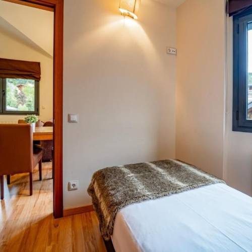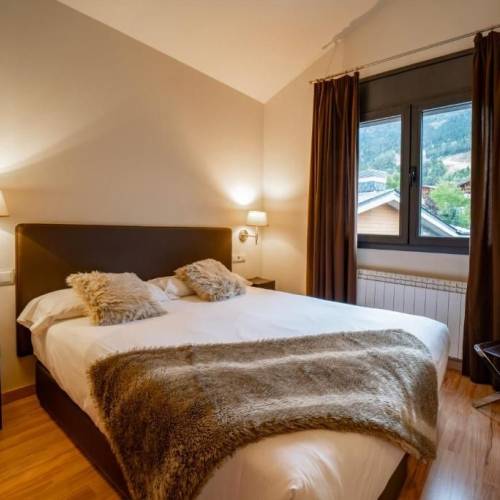 El Tarter, AndorraUbicado en la Vall dIncles, ambiente tranquilo y relajante, con vistas a la montaña y en medio del río Valira. En el hotel podrá disfrutar del Spa, (piscina climatizada, piscina para niños, jacuzzi, sauna, baño turco y gimnasio), wifi en áreas comunes, sala infantil de juegos, sala de lectura, sala de televisión, restaurante, bar y parking. Disponen de una tienda donde podrá alquilar su material y transporte gratis para acceder a las pistas de esquí más cercanas. El hotel cuenta con 149 habitaciones, todas ellas con calefacción, televisión satélite, caja fuerte (suplemento), minibar de pago, amenities, secador y espejo de aumento. Todas las habitaciones son exteriores con vistas a la montaña o al río Valira. **** Los niños de 0-6 años tienen gratis el alojamiento. Comidas a pagar directamente en el hotel. Los niños de 6-10 años tienen 50% descuento en el alojamiento. Comidas a pagar directamente en el Hotel.