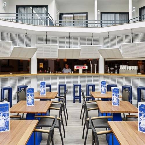 Lloret de Mar, EspañaEl hotel 4 estrellas Superior está situado en el corazón de Lloret de Mar, a pocos minutos a pie de los principales puntos de interés de la ciudad. El hotel, completamente renovado en 2019, ofrece más de 400 habitaciones, un restaurante Front Cooking y un restaurante temático, Spa, gimnasio y un área de descanso solo para adultos con piscina desbordante en la azotea del edificio, así como un Splash Park para niños. El hotel L'Azure promete ser la nueva referencia para la celebración de cualquier tipo de reunión, evento corporativo o social en la Costa Brava. WiFi gratis en todo el recinto.