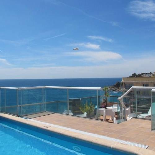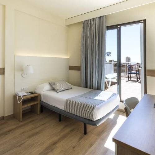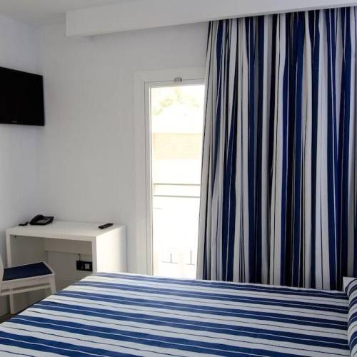 Lloret de Mar, EspañaHotel de 3 estrellas totalmente climatizado que dispone de 50 habitaciones, 7 estudios y 3 apartamentos vista mar. Recepción, Restaurante Buffet principal. Salon TV. 1 mini piscina exterior 4m x 2m. (climatizada cubierta en baja temp.).Tumbonas en zona piscina, terraza panorámica vista mar. Fitness Center (Baño turco y Gimnasio). Garaje y parking exterior propio. No se admiten animales AlojamientoHabitaciones dobles vista mar , con capacidad maxima para 3 adultos o 2 adultos + 2 niños. Disponen de baño completo, terraza, teléfono, secador de pelo, aire acondicionado,nevera , caja fuerte en alquiler y T.V. via satélite. Estudios vista mar, con capacidad maxima para 3 adultos o 2 adultos + 2 niños. Disponen de 1 Habitacion doble vista mar, con sofa litera. Equipado con kitchenette electrica, nevera y microondas. Baño completo, terraza, teléfono, secador de pelo, aire acondicionado, safe y T.V. via satélite. Apartamentos vista mar tienen una capacidad maxima para 4 adultos + 2 niños. Disponen de 2 Habitaciones dobles vista mar , Salon comedor con 1 sofa litera. Equipado con kitchenette electrica, nevera y microondas. Baño completo, terraza, teléfono, secador de pelo, aire acondicionado,safe, y T.V. via satélite. Tasa turística de Cataluña no incluida en el precio y de pago directo en el establecimiento.