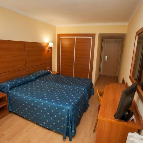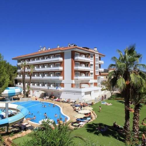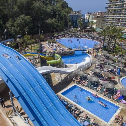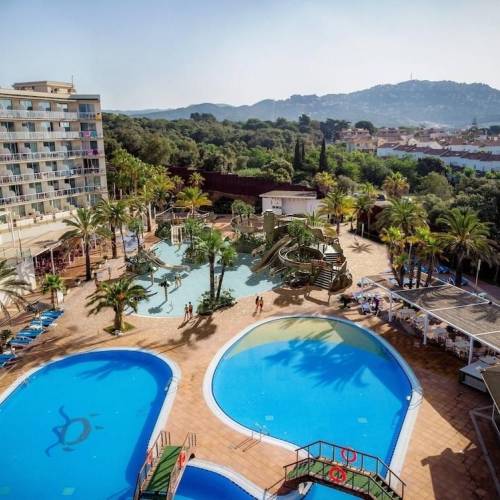 Lloret de Mar, EspañaHotel de 4 estrellas totalmente climatizado que dispone de 300 habitaciones y 50 apartamentos.Recepción, Restaurante Buffet principal , Snack-Bar piscina, , Bar-cafeteria, salon TV, Internet corner, terraza-jardin al aire libre, 5 piscinas ( 3 exteriores y 2 interiores climatizadas cubiertas), Fitness y Spa Center (jacuzzi, sauna finlandesa, baño turco, gimnasio, gruta de hielo y vestuarios) . Mini club y kids Club . Pista multideportiva, minigolf, pista petanca. Toboganes acuaticos. Garaje y parking propio. No se admiten animales. AlojamientoHabitaciones dobles standard con capacidad maxima de 3 adultos o 2 adultos + 2 niños. Todas las habitaciones disponen de baño completo, terraza, teléfono, secador de pelo, aire acondicionado, caja de seguridad (alquiler), minibar (alquiler) y T.V. via satélite. Apartamentos de 40 m2 aprox., con capacidad máxima para 4 adultos o 2 adultos + 3 ñiños. Todos los apartamentos disponen de Habitación principal, Salon comedor con 3 sofas-camas individuales. Baño completo, terraza, teléfono, secador de pelo, aire acondicionado, caja de seguridad y T.V. via satélite. Equipado con kitchenette electrica y nevera. Tasa turística de Cataluña no incluida en el precio y de pago directo en el establecimiento.