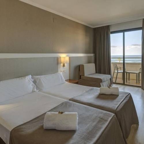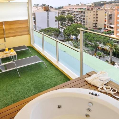 Lloret de Mar, EspañaSITUACION: Hotel de 4 estrellas situado frente al mar, en una zona tranquila de Lloret de Mar. HABITACIONES: Dispone de 267 habitaciones en 2 edificios de 4 y 5 plantas entre habitaciones dobles estándard, dobles vista mar y suites junior estándard o vista mar ( dobles + salón ), disponen de baño completo, balcón, teléfono, secador de pelo, canal musical, A/A, Wifi gratis y T.V. vía satélite. Nevera gratis o minibar con paquete de bebidas de pago. Room services. Niños alojados en sofá-literas. SERVICIOS COMUNES: 3 piscinas ( 2 exteriores, una para adultos y una de niños y 1 piscina climatizada con agua marina y cubierta ). Pool-bar. Fitness and Spa center. Beauty salón. Salón de reuniones de empresa, salón lectura con area Wifi gratis. Salón Tv. Snack Bar. Bar café. NO se admiten animales. Tipo de servicio: Familiar, Spa, Hotel de playa, Primera linea de playa.